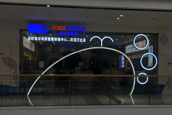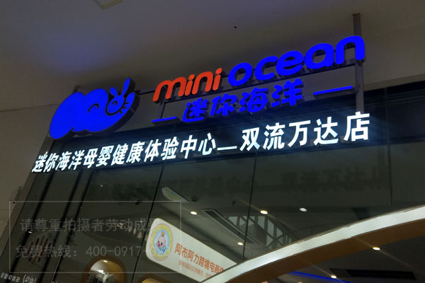 迷你海洋母嬰健康體驗中心店面門頭設計招牌發光字制作安裝