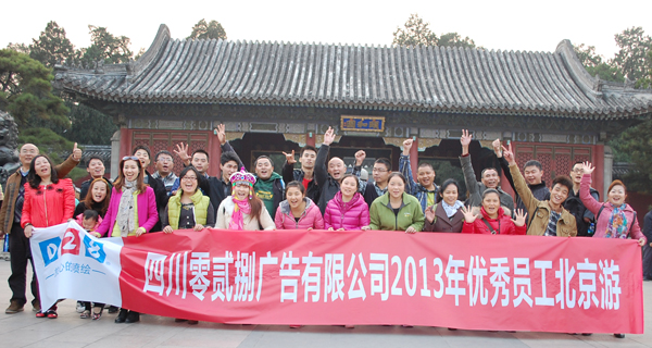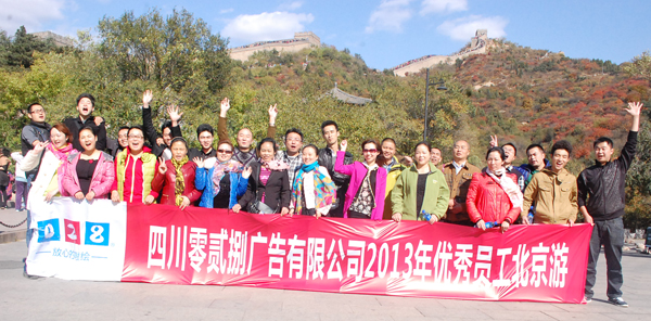 2012年5月到2013年5月四川028廣告公司優秀員工到北京旅游,我們從2013年9月19日早上7點出發,坐上了從成都飛往北京的飛機。到了北京我們第一時間來到了故宮,聽導游詳細的講解它的歷史文化。之后的幾天我們分別來到了八達嶺長城、頤和園、香山、天安門廣場看升旗儀式、中國歷史博物館、毛主席紀念堂、還有到天津看周總理紀念館等。