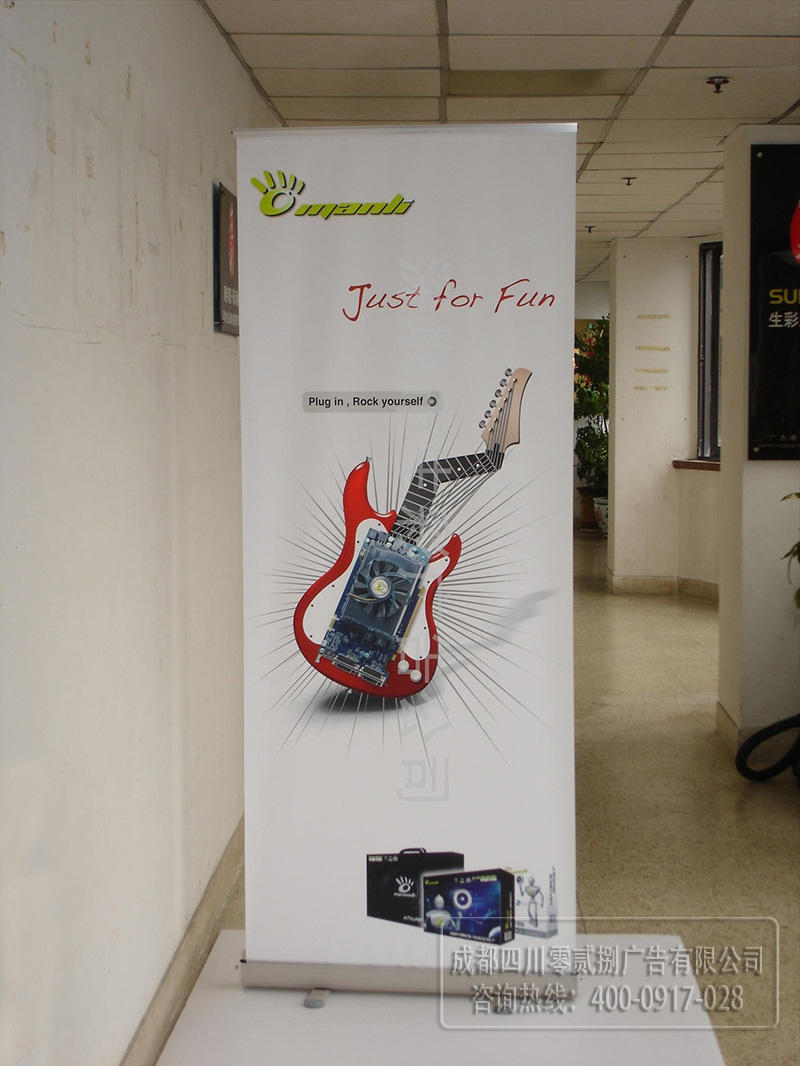 尤其是節假日,街頭巷尾80%的店鋪,亦或者商場里的商鋪,你都能看到門口立著一個易拉寶來為店面做宣傳,為節日的活動。從名字上,我們基本上就可以知道是海報的那部分可以卷起來,這對存儲收納非常方便的。一直發展到現在,易拉寶也已經得到廣泛的應用。